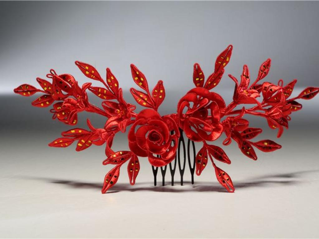 “In Pairs: The Creativity, Designs, Textures and Symbols of the Wedding in Taiwan” was carefully planned by the National Taiwan Craft Research and Development Institute. The collection of historical documents related to marriage practices and craft creation began in 2015, connecting the meaning of wedding ceremonies and craft creation of different periods as shown through the evolution of marriage practices, bridging their forms, materials, textures, colors, and symbolic meaning. The exhibition not only displays different types of settings for wedding creation themes, but also invites contemporary artists to focus on the topic of marriage in carrying out creative work. The works take red and gold as the primary colors. Materials include gold work, lacquer ware, ceramics, wood, paper, and cloth. The shapes and codes are rich and diverse, yet retain the symbolic meaning of success and reunion through geometric symbols, with the use of the character for “happiness” especially visible. The repeated character that represents “double happiness” is the most commonly used auspicious symbol in wedding ceremonies, consisting of two identical “happiness” characters placed side by side, like a man and woman standing hand in hand. The four “kou” (mouth) symbolically represent many children and grandchildren and a happy family.