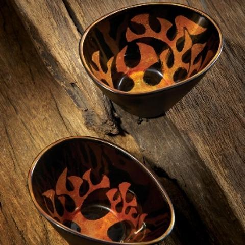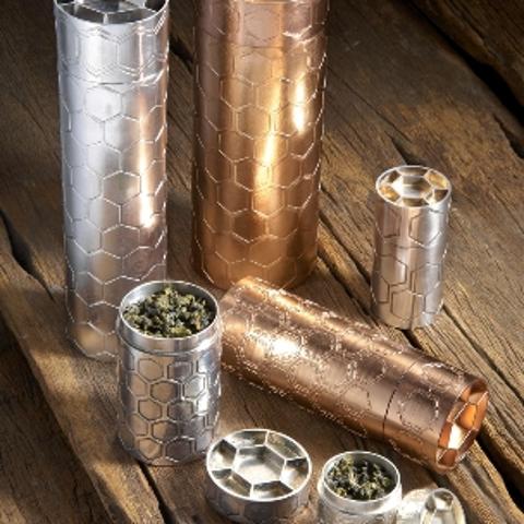 臺北當代工藝設計分館舉辦的「層峰山林」展,創作者楊承峰在傳統工藝的結構與創新意念的解構過程中,尋找新的思考態度。在材質研究上他擅長以金屬為主要媒材,結合天然漆藝與竹籐編織,使得原不相屬的媒材產生對比而激起燦爛的火花。在創作形式上他以台灣特有草木花蝶的紋樣裝飾,創作出有著綺麗金屬色彩的杯盤茶具組,作出具時尚美感且實用的工藝精品,不單只是被使用,也能提升心靈能量,創造美好的生活體驗。