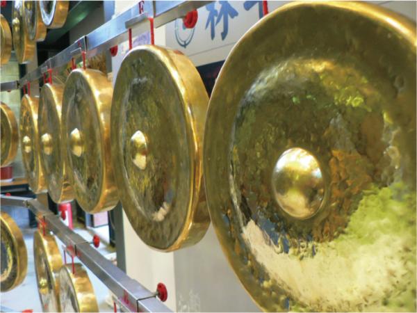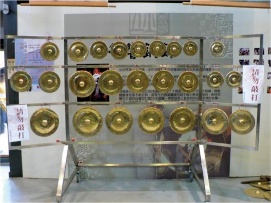 此外,調音可是好品質的「祕訣」。在旁看林烈旗敲鑼面,外行人聽來皆一般的聲音,他一聽即知何處音不準,又東敲西打一番,直到滿意為止。如何製鑼他不吝說明,唯獨問到調音技巧,他笑著直說:「這很難講明白啦!」