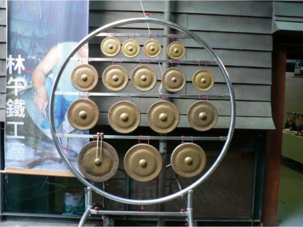 銅鑼可以分為大鑼、小鑼、雲鑼、十面鑼等。大鑼的聲音宏亮、強烈,以包著棉布的木棒敲往鑼中心點,會擊出「哐,哐……」的聲音,音量大且綿長。林烈旗表示,鑼自古的作用為宣告、傳訊,所以音色要達到長、遠、穩、沈的境界,中間凸出的部分叫做「臍」,聲音的高低取決於鑼臍的大小和鑼面厚薄,鑼臍大而厚,聲音較低,反之則音高。