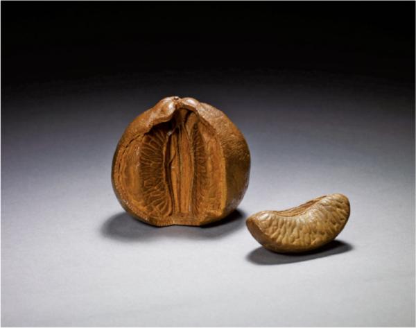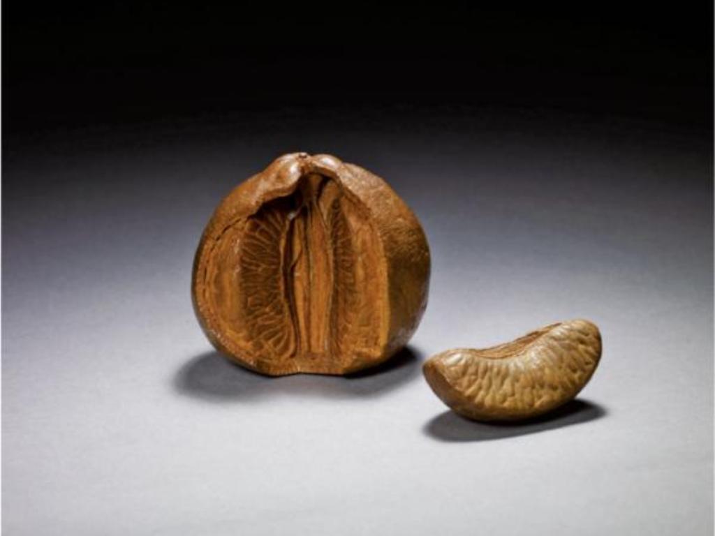 在館藏的作品間瀏覽游移,不禁讓人驚呼連連,你可以看到以黃楊木雕成平滑的竹莖、逼真的竹節,不論是蔬果微細的紋路,或是嬉遊其間的小昆蟲,自然界中生命力的傳神展現,頓時模糊了「真」與「假」之間的界線。特別是有關紡織品主題的木雕,布鞋、毛巾、手套、衣服等等,要用堅硬的木頭來呈現紡織品的柔軟,甚至將細微的線頭與織線逐一雕出來,若要細細的算,一整雙手套不下於十幾萬刀,還要雕出立體感、柔軟感與美感,而且過程中不能有任何差錯,一刀歪了,所有心血都報銷,足見不只是細心,更要有超凡的耐性。
