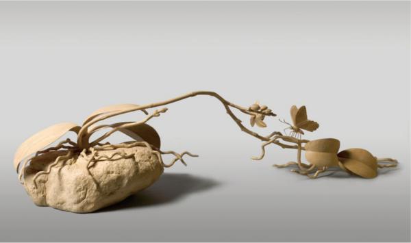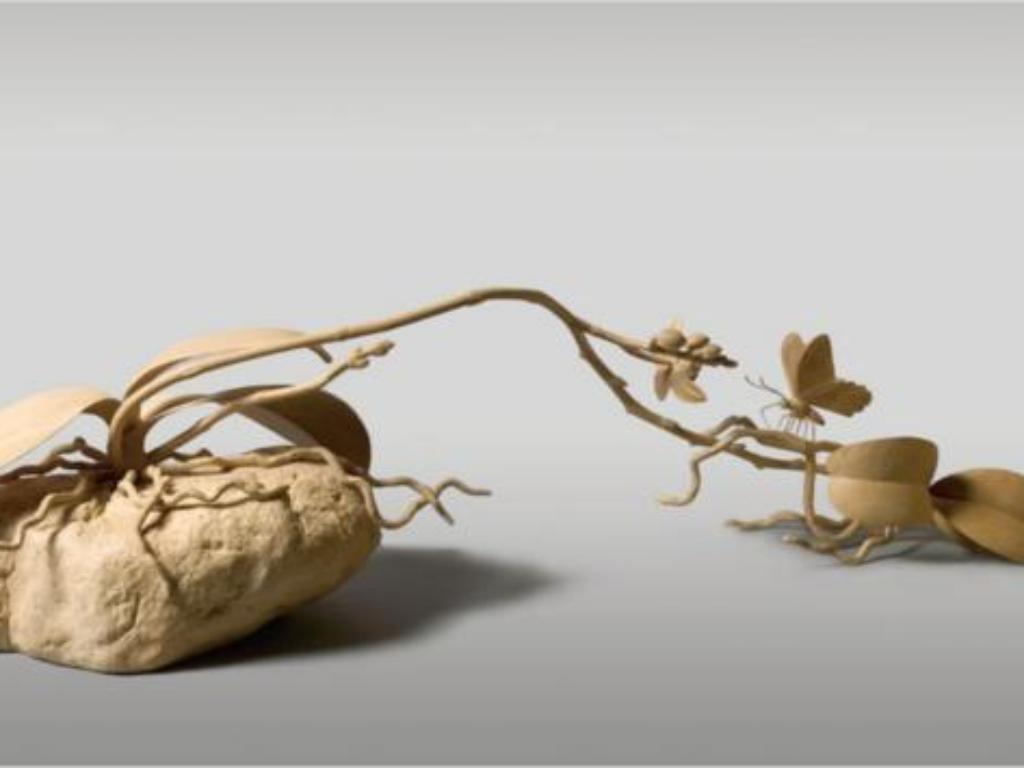 精雕是三度空間的立體藝術創作,構圖上須講究層次與景深,以實景托虛景,形神兼重,可謂對生命本質認識的一種集中表現,具本質永恆性的形式表現與特殊性,正是呂美麗的精雕作品透過虛實結合的造形藝術,細緻地呈現出讓人悸動的生命力。