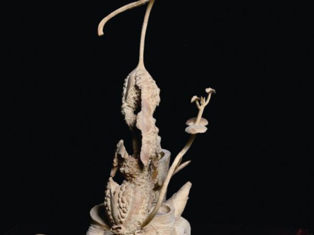 讓蔡清鈿拿下五十七屆全國美展金龍獎的〈力與美〉,則藉獨角仙以頭部巨角奮力撐起樹皮的圖像,呈現從無到有的打拼衝勁,「人生要打拼,肯打拼就有力量,可以像獨角仙撐起一片天。」蔡清鈿正色地說。
