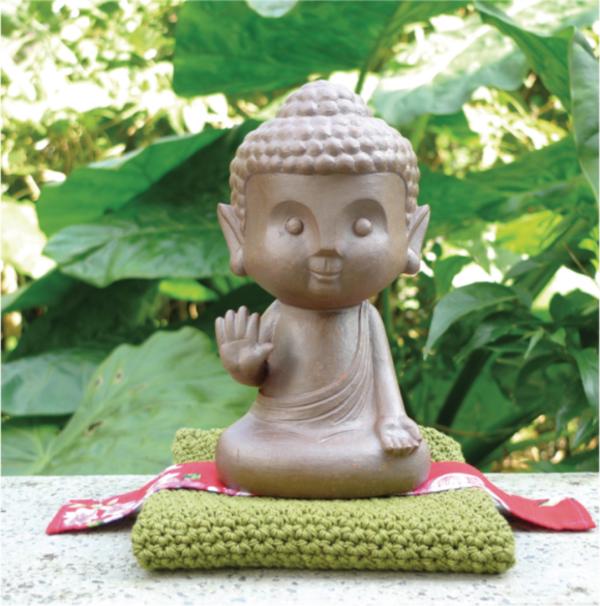 近來陳兆博又進一步結合社區的編織媽媽,將有溫度的手感編織,做成蒲團與「寶貝袋」。盤腿的小菩薩端坐蒲團上或露出頭部,模樣煞是可愛,看到的人莫不大喊「卡哇伊」。陳兆博表示,這個作品的可愛,其實是反映了每個父母都將小孩當成心中小菩薩的心情,而手織蒲團及袋子則如同母親的一針一線,用慈愛溫暖的心,懷抱著每一個來到世間的小寶貝。話說回來,陳兆博對陶藝的愛,反映在燒製過程的細心上,又何嘗不能作如是解呢?