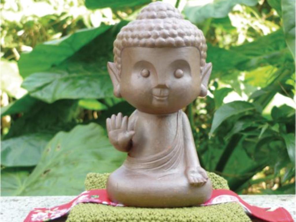 曾經學過佛像雕刻的陳兆博,曾運用雕刻的技法塑燒佛像,其中阿彌陀佛的作品因為獲得法鼓山的青睞,為他得來了阿彌陀佛陶像的訂單。他為法鼓山製作的這尊陶像有施無畏印、禪定印、雙手合十印數款,神韻莊重卻又顯得極為可愛,由於這尊「小佛像」大受歡迎,推出後不久即成為與青瓷齊名的作品。