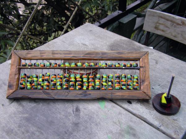 在電算機尚未發明前,中國人以算盤做為計算工具,因為求學時代學過算盤,因此施秀菊以懷古的心情,用「土地之珠」琉璃串出〈數算智慧〉。土地之珠代表的是財富,但是,這個財富並非現實生活中的金錢。她認為,智慧與能力不是金錢所可以架構,而是透過心靈的提昇才能獲得的。