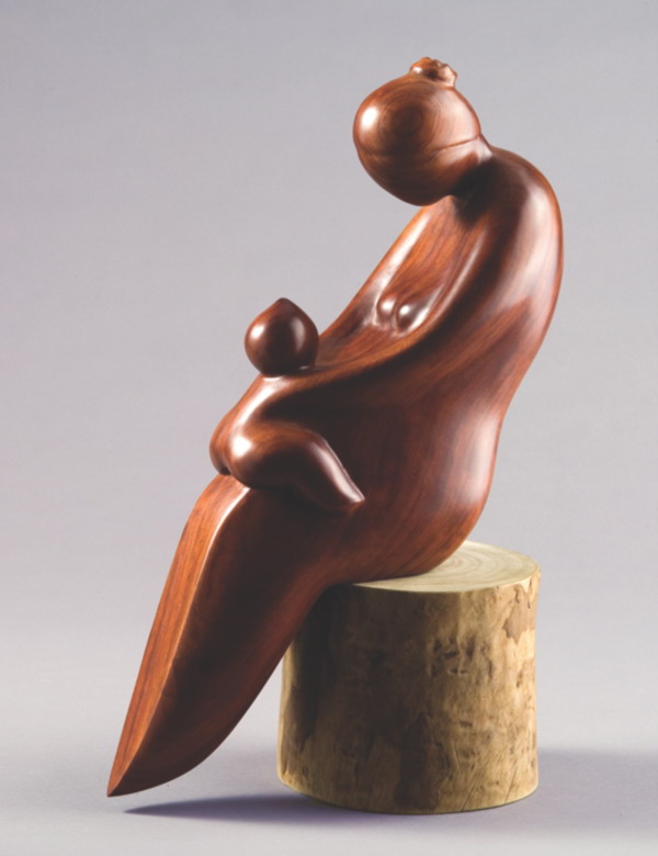 有人說懷孕的女人最美麗!說的是發自內心的母愛光輝。為了刻畫孕婦的神韻,曾文章不時至醫院婦產科或市場觀摩。作品〈韻(孕)〉傳達出便便孕婦優雅的站姿,帶出有子萬事足的神韻。他並以電鋸製造出彷如妊娠紋的肌理,精細刻畫出女人孕育生命的張力。〈母愛〉則描繪母親將嬰兒攬抱在懷中的景象,圓潤的造型彷如母親滿滿的愛,形體給予觀者極大的溫暖感受。〈慈暉〉與〈母愛〉有異曲同工之妙,盤坐的母親以溫暖的大手圈住站在肚上的嬰孩,那雙溫暖厚實的手如同一座城堡,讓孩子免於驚懼!