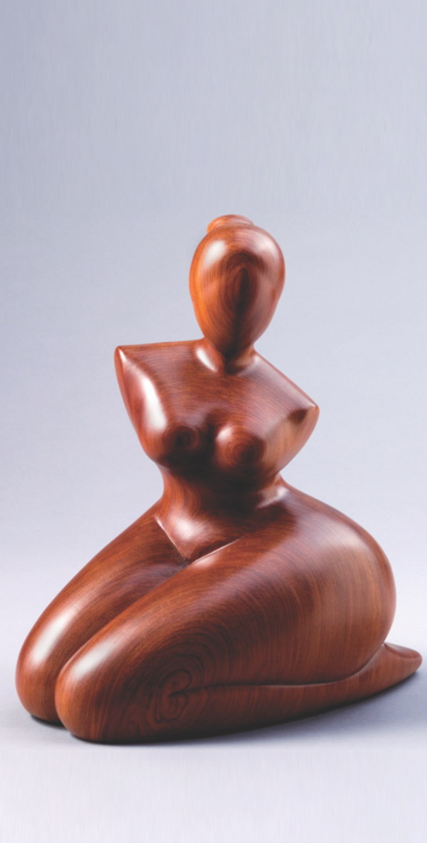 發展自己與眾不同的風格是藝術家被看見的方式之一,但有別於多數雕刻家以檜木、樟木等軟木為材質的選擇,曾文章捨棄大眾通俗路線,改以高硬度且紋理多變的花梨木為素材,強化創作的難度,再以禪風與柔性之美系列呈現藝術第三個十年的風格定位。