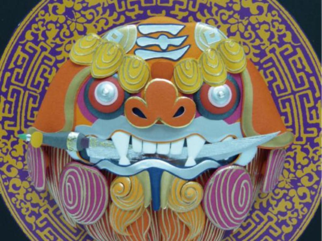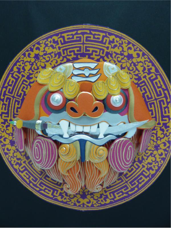 除了鳥以外,陳一中的其他動物紙雕也別具趣味。獅子自東漢便是趨邪避凶之聖獸。清朝時鄭成功的軍隊在臺南鹿耳門登臺,為扺擋荷蘭人的槍炮彈藥,他們在藤製的盾牌外加上鐵板增強防禦性,又在盾牌中心鑄造猛獅的形象,藉此安頓軍心。將士操練返家後,都會將獅面盾牌掛在牆上,刀劍則插入獅面盾牌牙縫鐵勾中,從外面看有如獅子咬劍一般,遇有宵小欲竊盜,見此即知居者為官兵而不敢造次,安平當地居民於是紛紛仿效,沿襲成為當地的習俗。