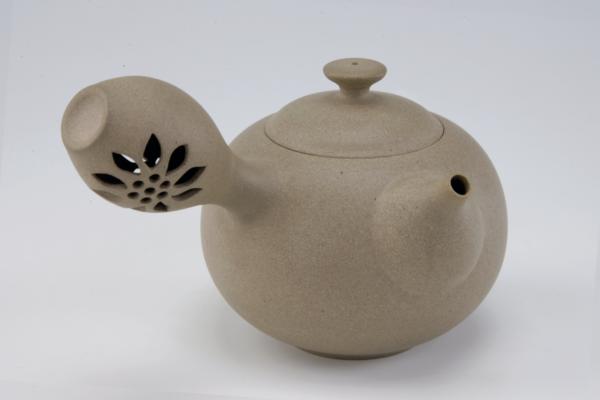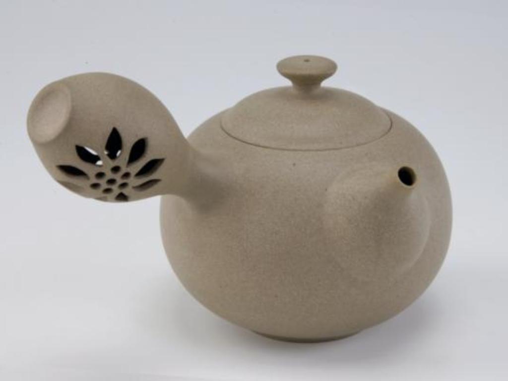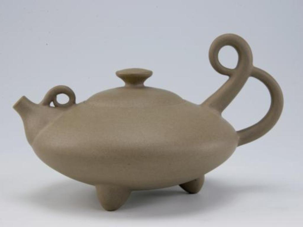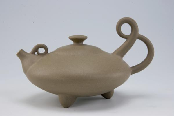 〈圓緣〉與〈圓滿〉頗為近似,也是心求圓滿的作品。這是一隻養過的茶壺,經過茶葉日積月累的浸漬與主人之觸摸,壺身呈現咖啡色調,也因陶土吸吮茶汁的比例不同,色澤也富有層次感。