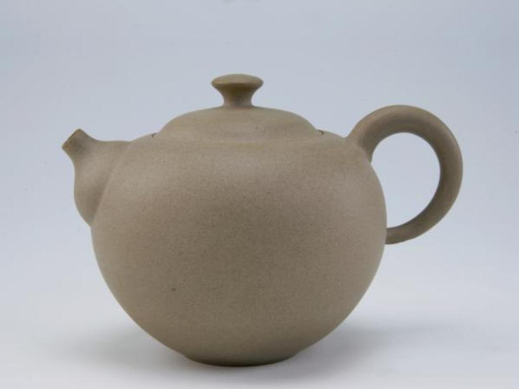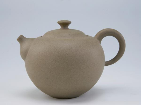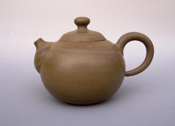 周美智製壺偏愛苗栗土,她並透過篩子除去粗沙與雜質,因此,整體壺身呈現細緻之質感。生性慈悲的周美智喜歡生活中的和諧,和諧即能圓滿,〈圓滿〉的壺身幾乎是個圓,壺蓋與壺身更是緊密接合呈現一體,壺柄粗中帶細,仍是圓弧造型,整體充滿溫暖之情。對收藏茶壺者來說,是否三點成一直線是外觀上的評分要點;從壺身線條、折線、稜角上,也可以看出作者細心與否;此外壺把及壺嘴的接合處是否內外均修整平順,也都是考量重點。周美智的〈圓滿〉可謂完全符合要件。