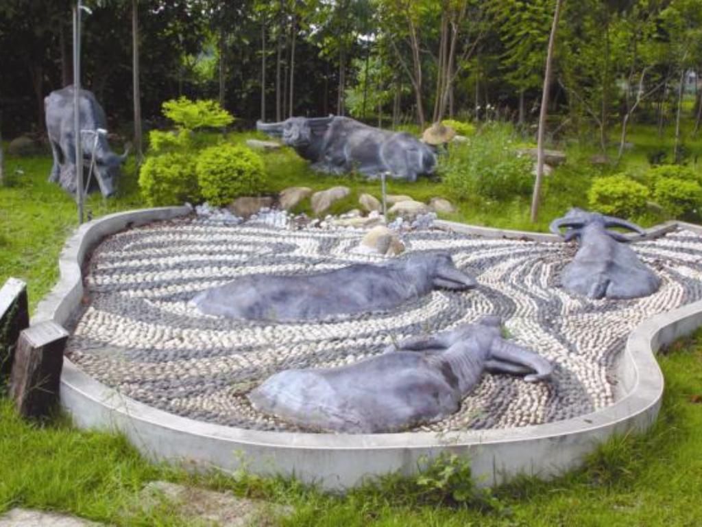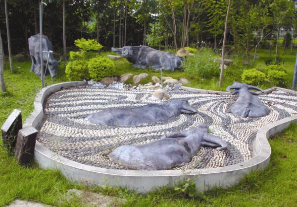 1995年,王松冠舉家遷移至風光明媚的茶鄉——名間。「高中同學住這裡,到他們家玩,看到名間美麗的茶園,覺得這裡真像仙境!毫不猶豫地就搬過來。」他在這裡設立了京麟雕塑文化園區,人像雕塑、田野裡的水牛群像等,充滿了田園藝術之美。