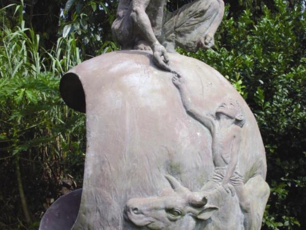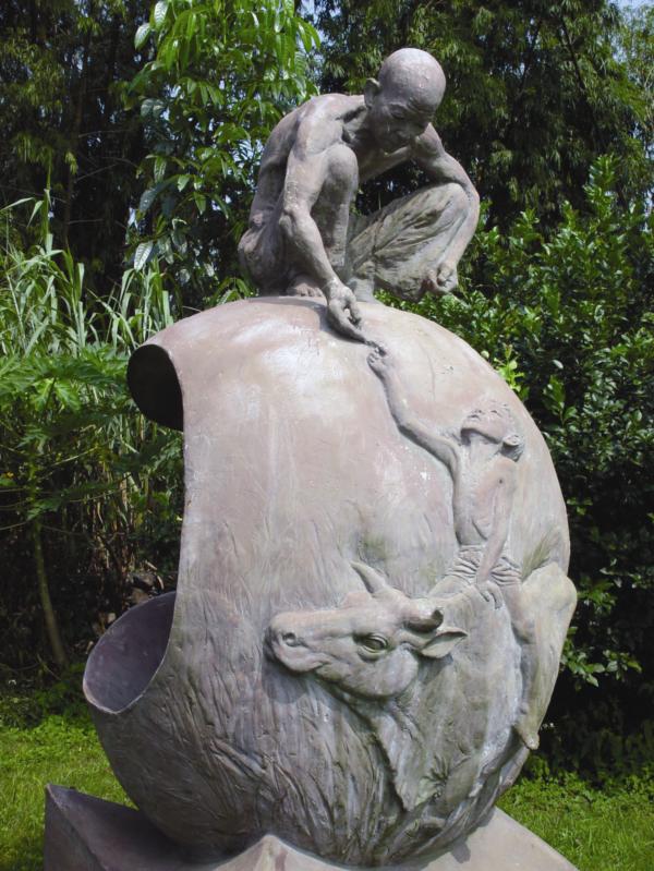 「田野風情」系列以農村生活為創作主軸,反映早期農民和牛、大地、草原、孩童密不可分的常民深情,無論是戲水的群牛或是在樹蔭下休憩的臥牛,低頭吃草的、在鋪陳著灰白鵝卵石的水池裡享受清涼的……,無論立體或浮雕,此系列莫不將牛隻的神韻掌握得栩栩如生,展現50、60年代農業社會牛與人類的親密關係!