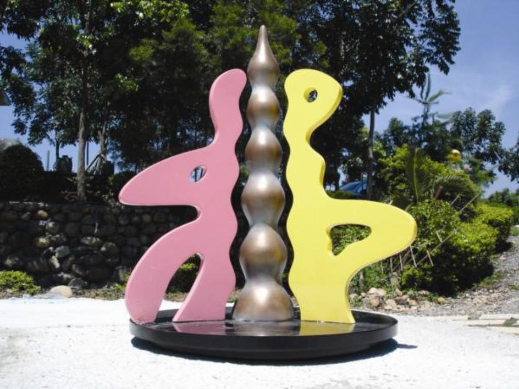 〈展望〉與〈生命之泉〉都是公共藝術。前者以道家的陰陽為創作主軸,如眼睛的造型表示四季、陰陽、鬆緊、轉動……,上頭一隻展翅的飛鳥,似欲衝向無盡的未來;〈生命之泉〉則是被安置在名間一處五叉路中間,王松冠表示,此處是通往三個村落必經之交會點,因叉路過多,不時發生車禍,為此,鄉公所特別請王松冠於此處製作公共藝術,其運用抽象但流暢的線條、鮮麗的色彩,一來提醒路經車輛減速慢行,二來運用中國的陰陽、八卦的概念,將所謂的路煞化為五路財神。