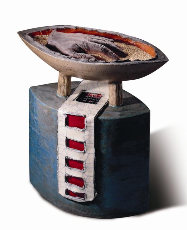 話匣子一打開隨即侃侃而談的王龍德,跟看似嚴肅的外貌可謂判若兩人。他笑說,自己並非設計科系出身,而是學商業資訊,是後來才去進修景觀設計管理及相關藝術專業的;而與陶土接觸,更是在泰國做貿易時的因緣,此後對陶藝創作的熱情一發不可收拾。 或許是九二一大地震身歷其境及長時間投入救災工作,讓他感觸既多且深,片刻的笑語之後,王龍德隨即嚴肅表示:「上天是公平的,所有材質皆無法接受歲月的摧殘,唯獨陶瓷。千年留存下來的文物,最完整的就是陶瓷,沒有陶瓷就沒有考古學,但它卻怕地震。」九二一地震之後,他搬到通霄圳頭,總共花了五年時間親手建造圳頭窯藝術空間這個園區,雖然建設工作至今仍在進行,但目前這裡已擁有極佳的場地和齊全的設備,而且每年有不少國內外的藝術家來此地交流,逐步朝向他理想中的園區式藝術教育中心邁進。