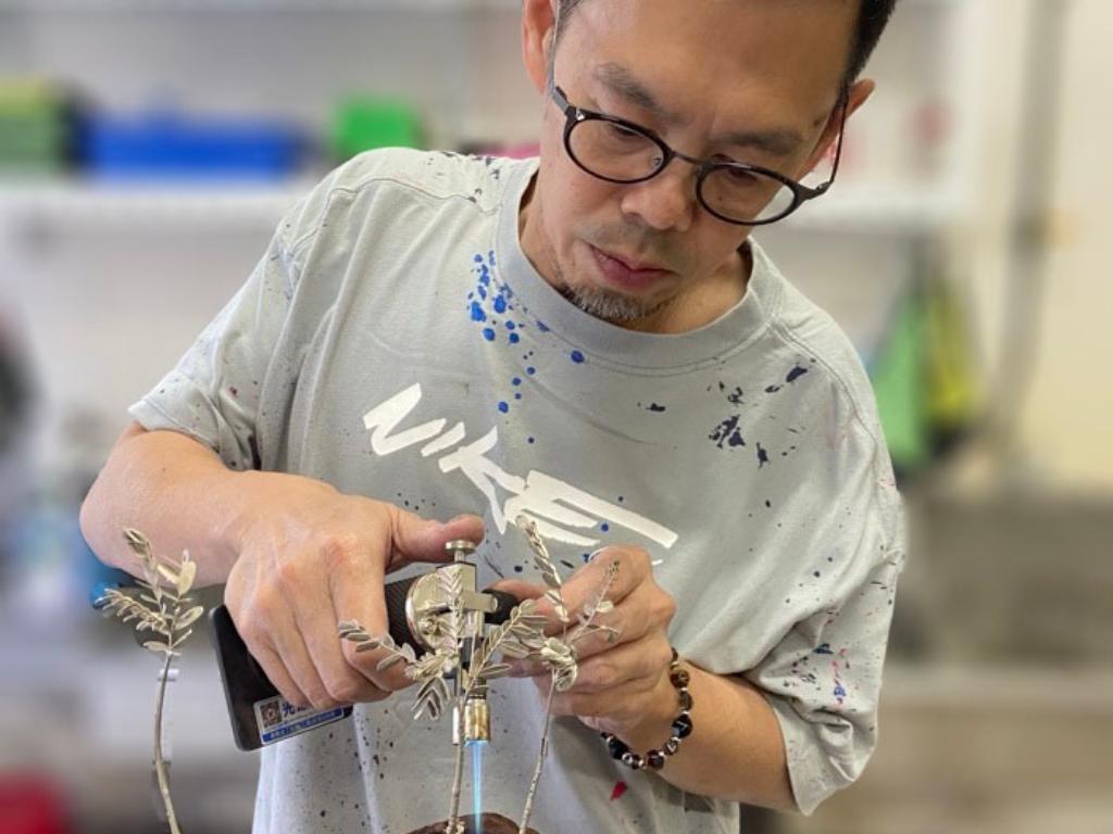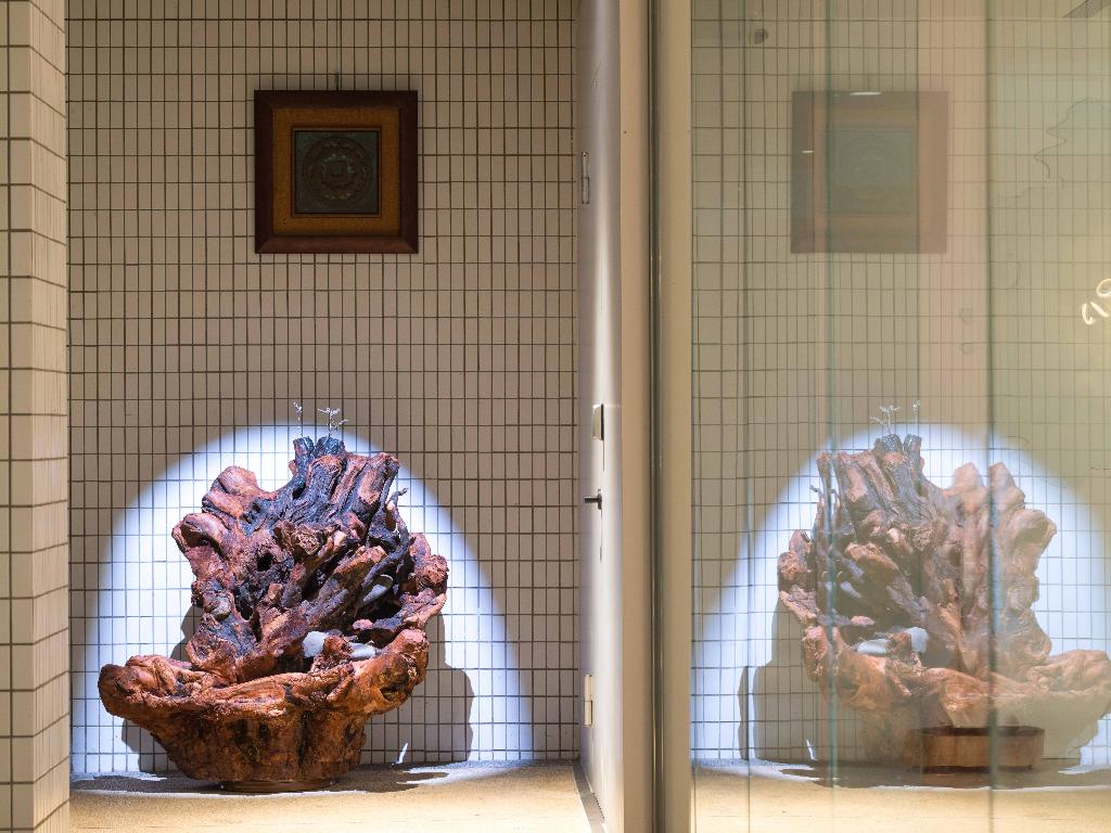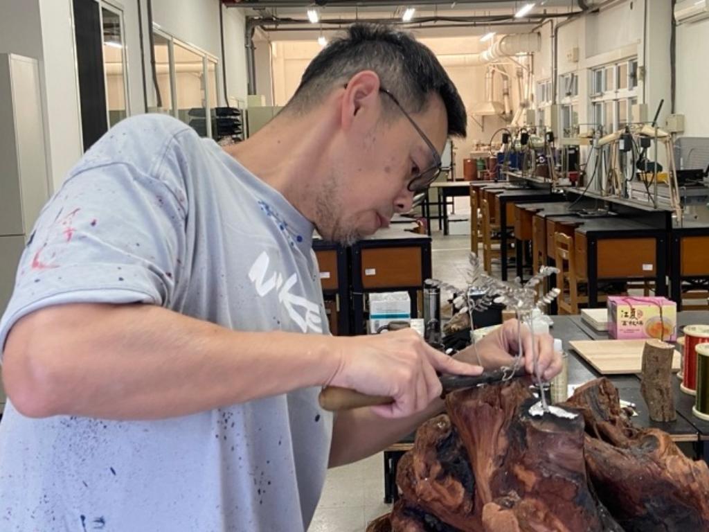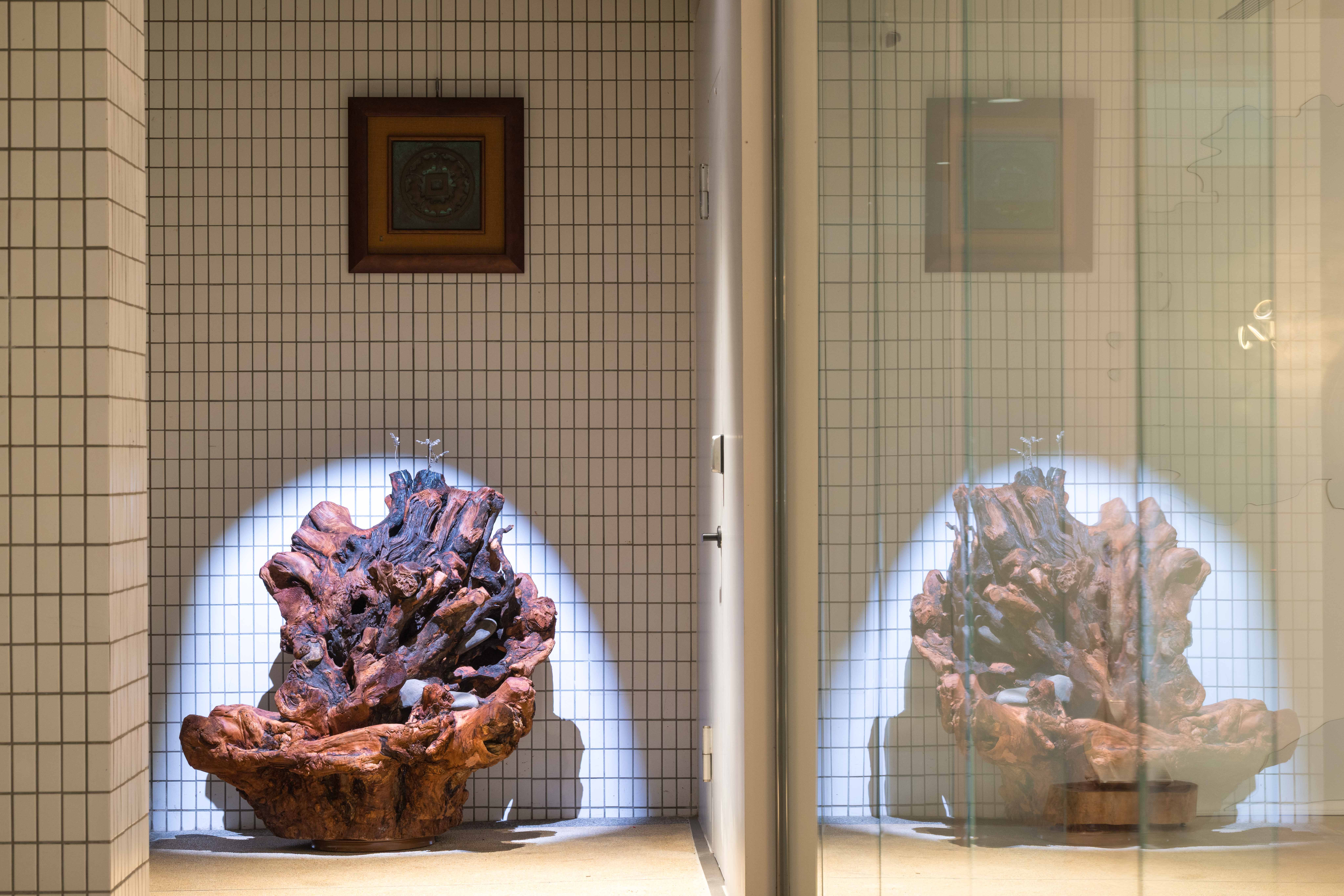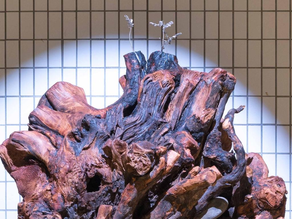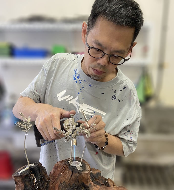 《 豆 相思 》 《 豆 相思 》園區位置:工藝櫥窗會客室前豆相思.五行小實 孔雀樹;相思豆.豆豆情話 眾善緣;思豆相.源水龍頭 話師生。從相思 走到鳳凰工藝之道 思想起緊緊抱住石頭與磚塊的小實孔雀樹,它的紅色種子,就是王維紅豆生南國詩中所說的此物最相思。《 豆 相思 》作品會客室前的《 豆 相思 》 以錫鎳合金澆注於小實孔雀豆樹根小實孔雀樹苗800度的高溫淬鍊、新生