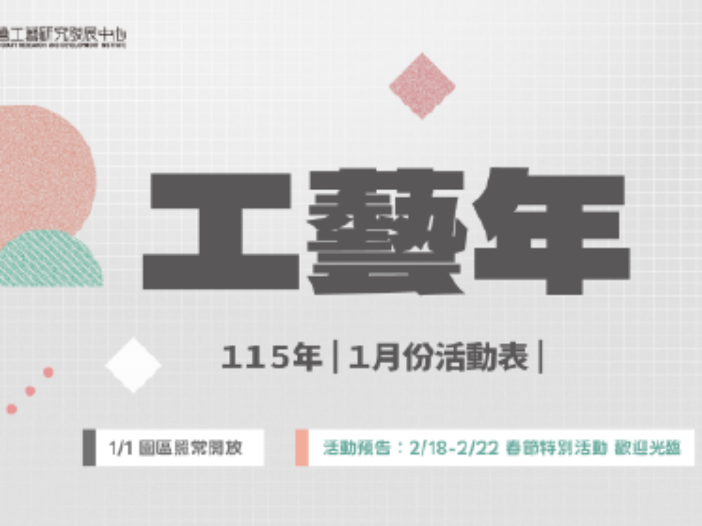 國立臺灣工藝研究發展中心2026年1月活動表正式出爐,我們為大家準備了深度講座、風格市集與手作體驗,邀您一起在工藝中找回生活的溫度。
