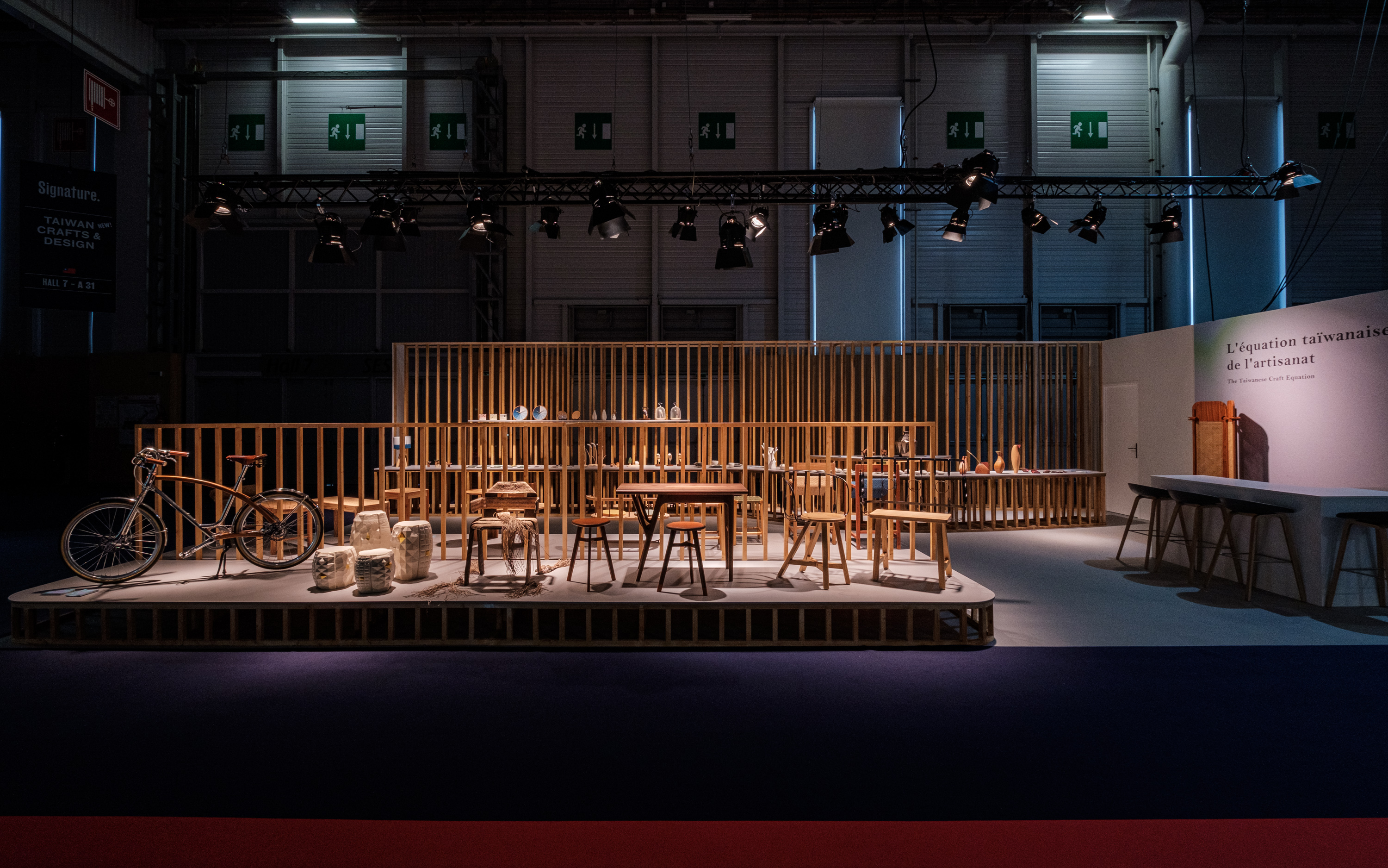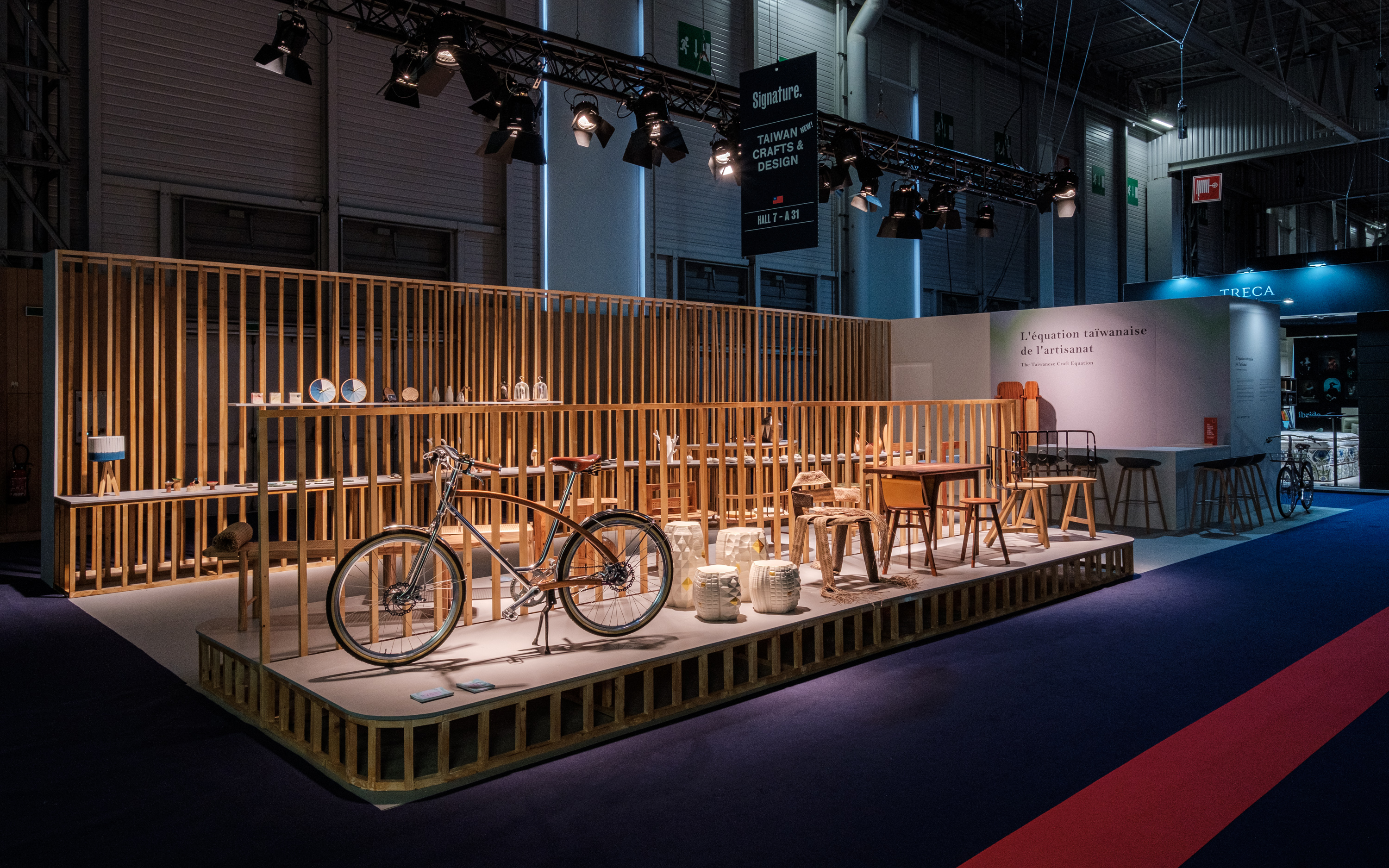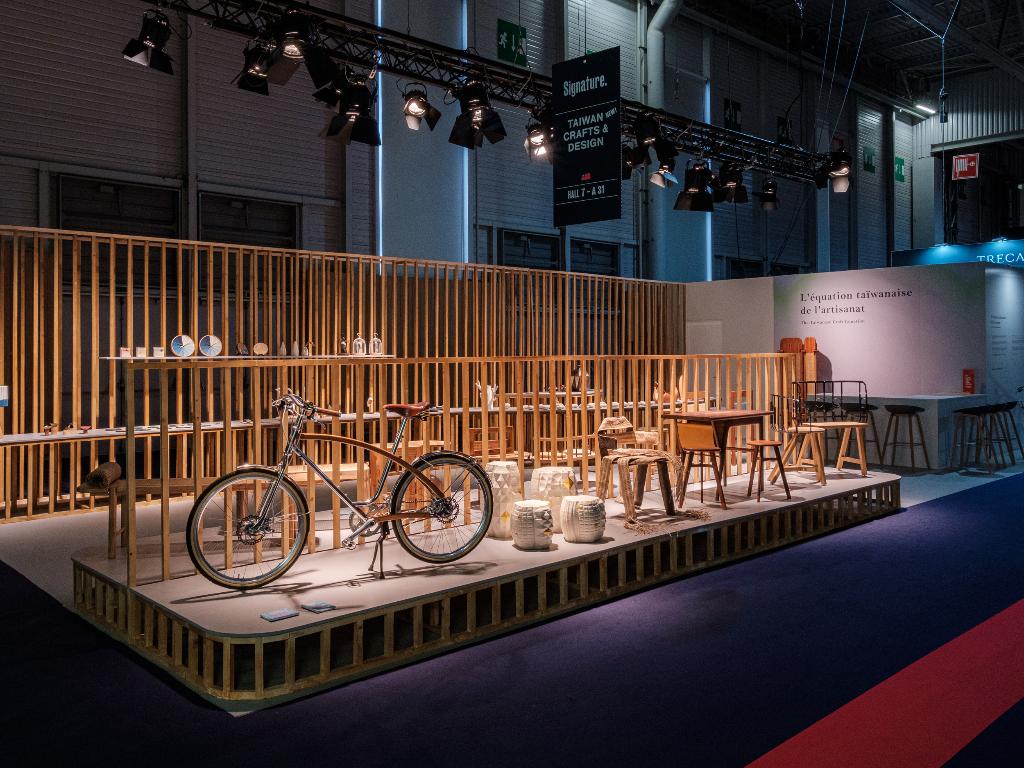 此外,因應近年商展轉型趨勢,巴黎展覽主辦方以藝術與時尚定位7館「Signature」以作為世界重要趨勢指標的展覽焦點。臺灣工藝館為此採以全開放式的展陳設計,以友善的空間動線,敞開對每位來自世界各國參觀者的歡迎,展區更特別規劃臺灣工藝形象區,形象陳列包括由臺灣工藝品牌糸島織物與菲律賓合作,將當地工廠生產過剩牛仔褲布料結合天然海草製作的循環織品藝術牆飾,以及臺灣設計品牌治器與雕塑藝術家蔡育田老師合作將臺灣福爾摩沙美麗之島意象,透過數位輔助方式所製作木質藝術家具作品等,藉以向觀展民眾傳達臺灣工藝館的綠工藝自然、循環、再生、平衡、寬容、希望、生命力的精神主張。
