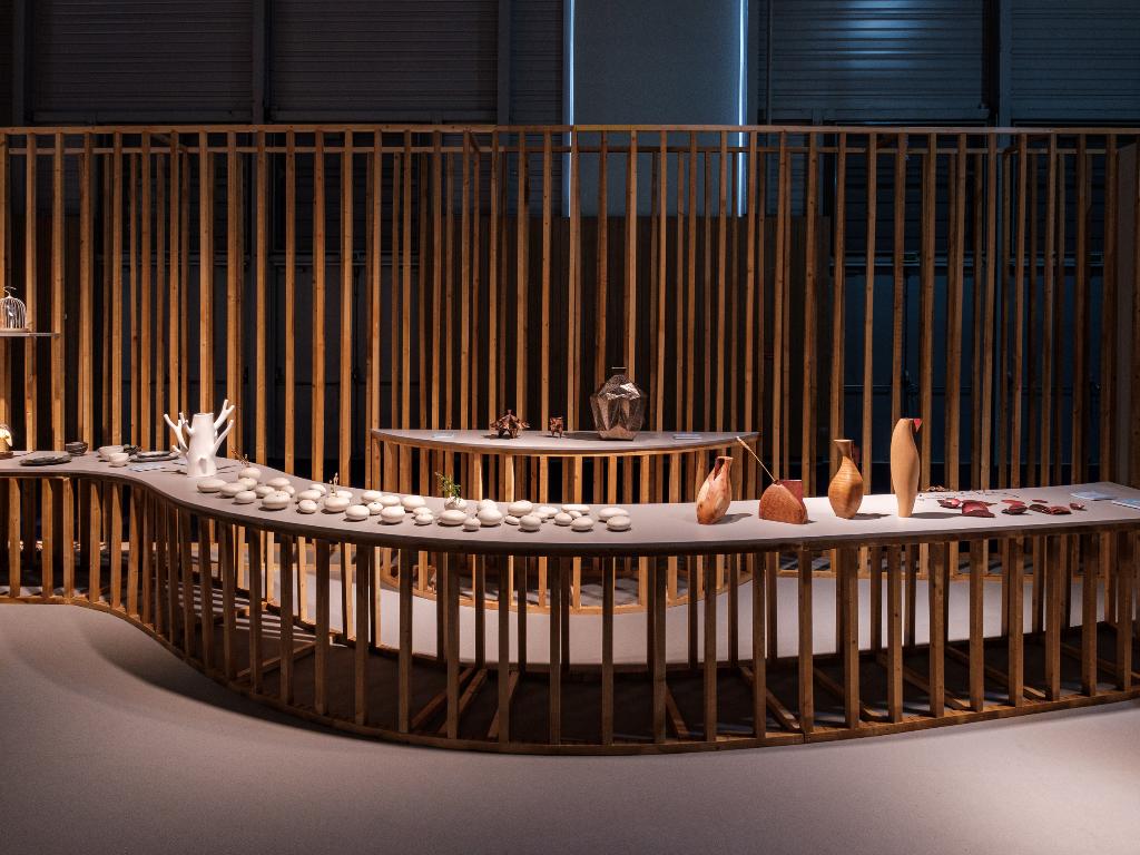 工藝中心張仁吉主任表示,位於大會7號展廳「Signature」的臺灣工藝館(Taiwan Craft and Design),成為全館亮點,展覽以數列式木格柵的陳列空間設計,對應主題「居家工藝方程式,The Taiwanese Crafts Equatio」的策展方式,向多國買家展現台灣工藝多元面向與內蘊對應世界的責任與價值。展品橫跨金工、陶藝、染織、木藝、漆藝以及當代數位工藝等80件。倡議在對在地自然生態的尊重、物件蘊涵的勞動精神價值以至於台灣社會的人文互動脈絡。諸如將臺灣藍染漸層藍色在當代生活用品的靜謐美學、結合鐵窗花元素與傳統木凳記憶合創、敲打臺灣構樹皮意象造型上漆的器皿、廢棄五金零件與材料回收再製的生活工藝精品、以及數位設計結合科技與傳統工藝的陶瓷3D列印作品等。臺灣工藝館將我國工藝文化產業對友善環境、節能減碳、綠色永續的概念,透過傳統工藝技法與各種材料的運用具體完美的實踐。