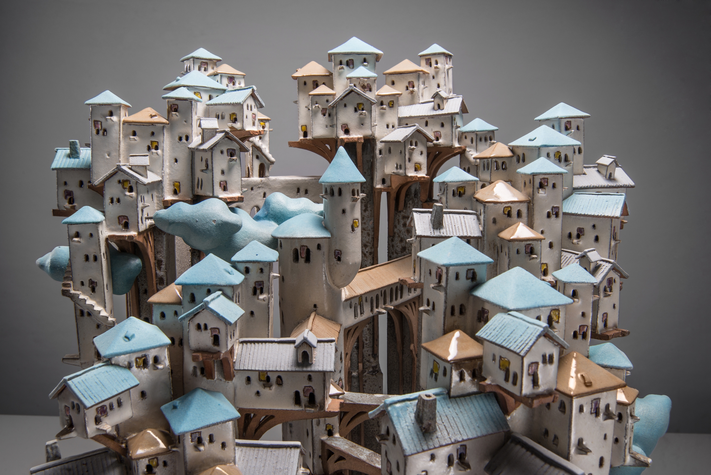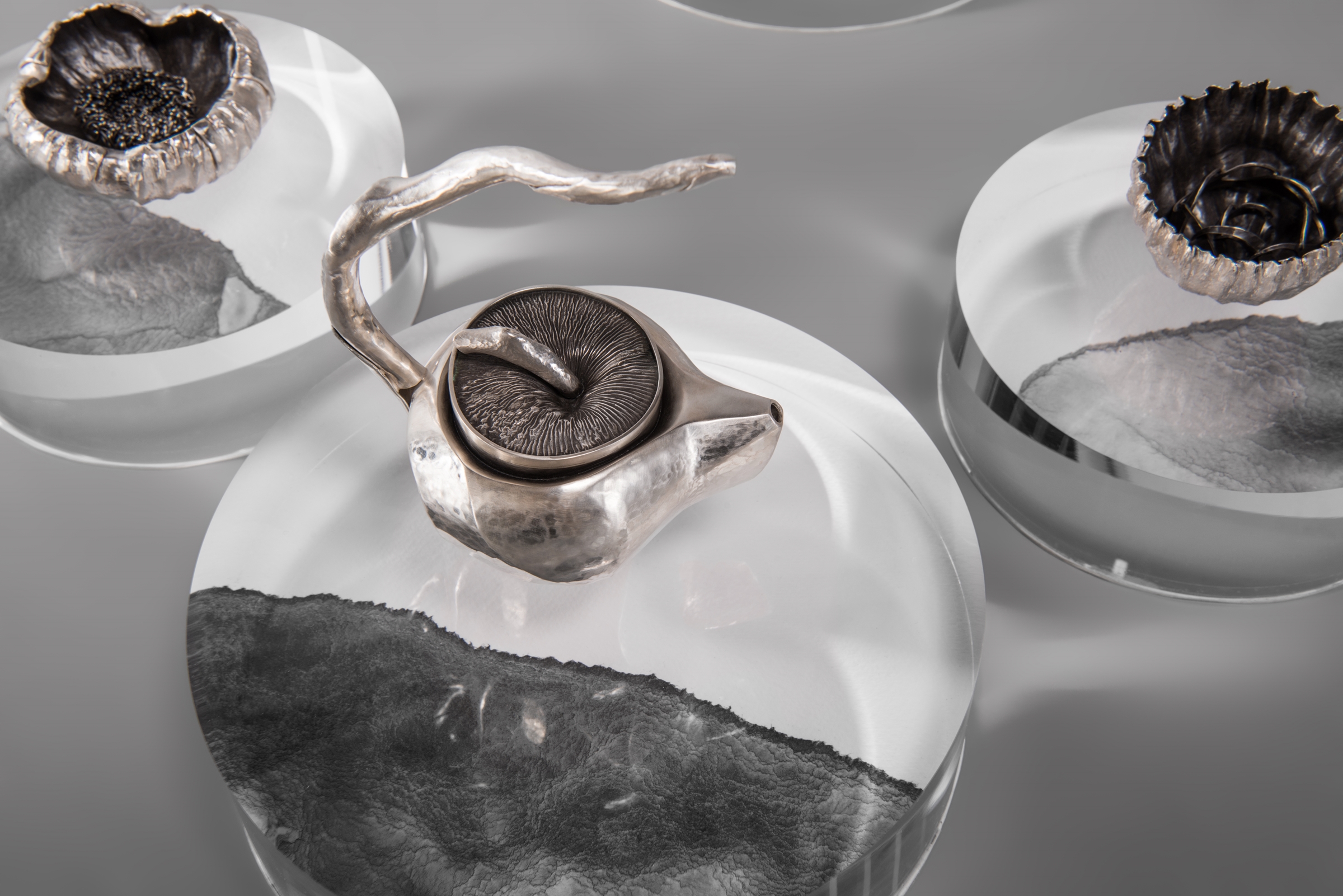 由白房子工作室蔡政宏所創作的「天際線」以陶板成型層層堆疊出夢幻般的超現實世界,從造型與色彩上讓觀者沾染愉悅氣息,且施釉得宜,為裝飾、造型及題材皆突出的作品。從台北移居花蓮的創作者黃淑萍作品「山高水承」,為組壺器與燃香器體制、鍛敲和皺金技巧純熟的作品,將山與海的一拔高、一沈入,既相互依存又互為承接的意象表露無遺,在展示設計上也極具用心的傳達行雲流水之共感。該獎項另設有三等獎、新光三越特別獎、創新獎、美質獎、機能獎以及佳作等獎項,從許多作品中看見極具創造力的前瞻想像,亦有融貫中西的純熟技巧及思惟與多樣化材質手感的美感價值,展現創作者在製作工法的深究、材質媒合運用的創意,對自然環境的細膩觀察、生命的反思及社會和人文意義探索。