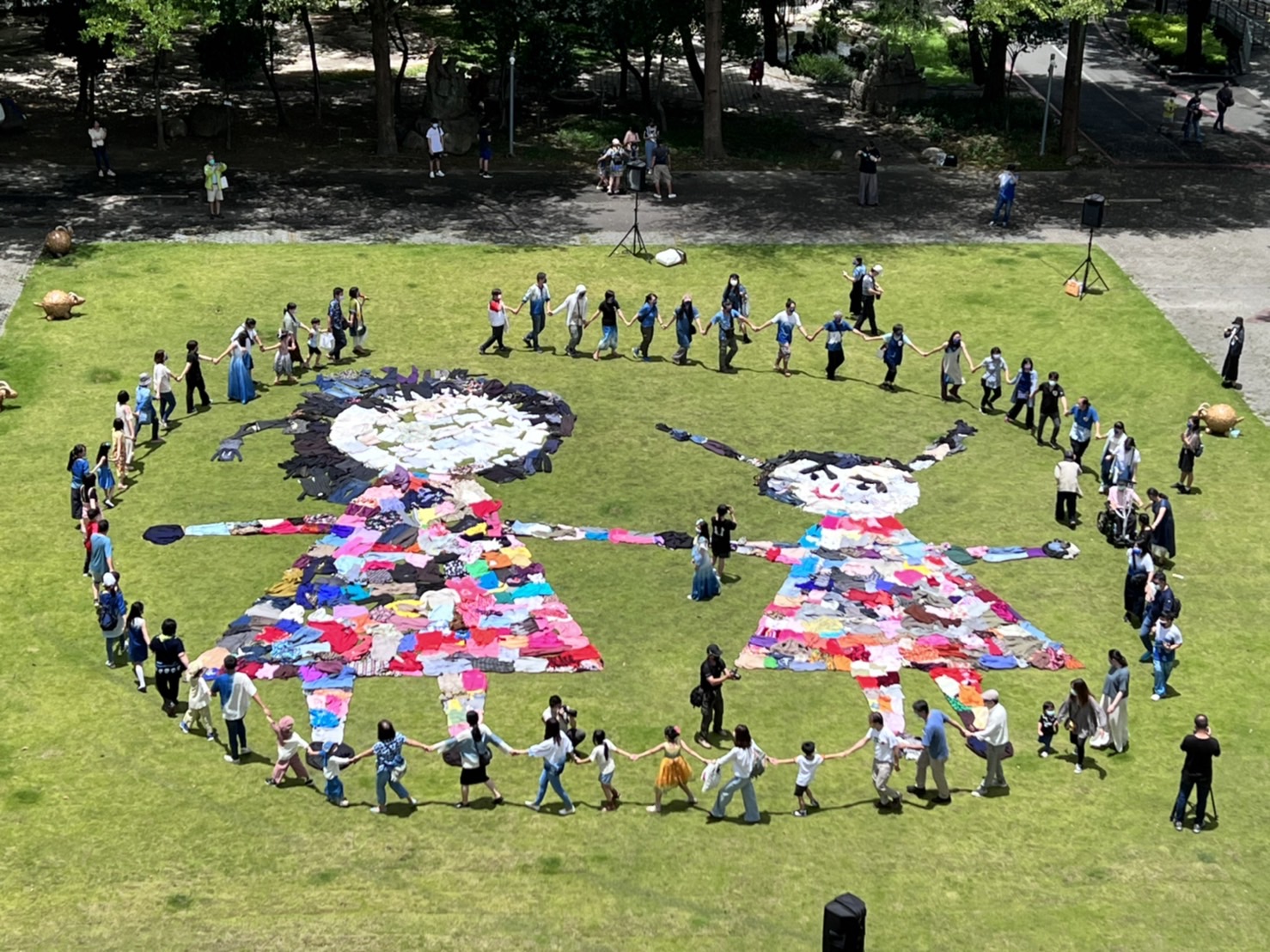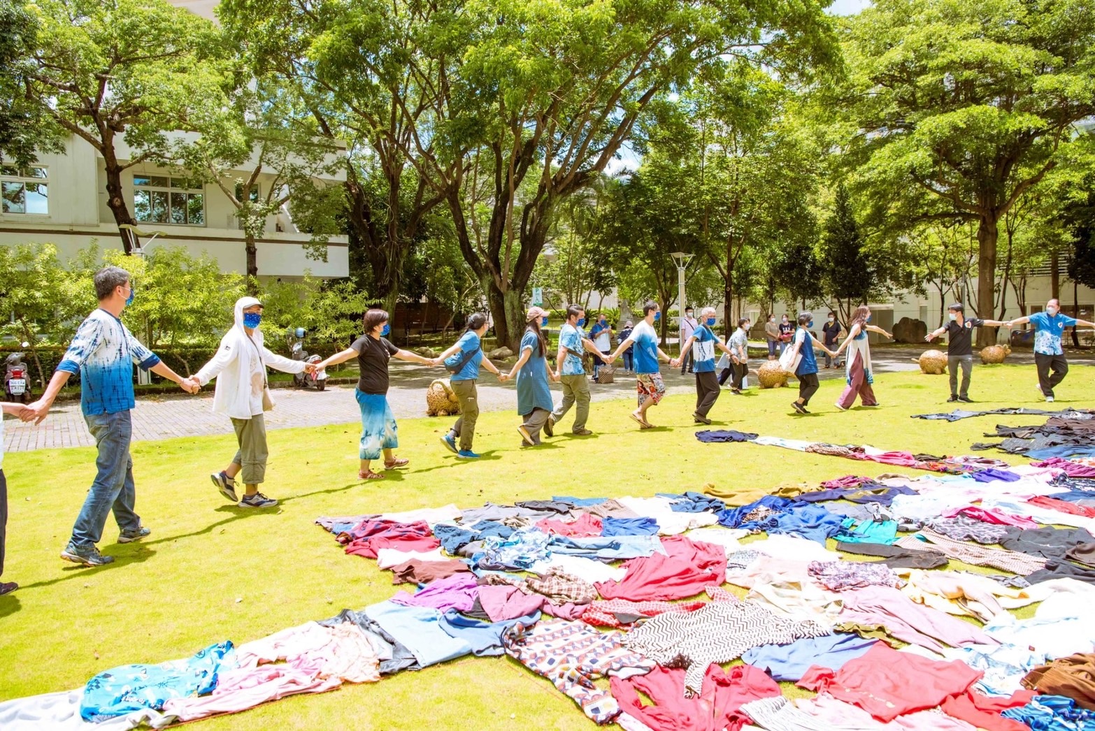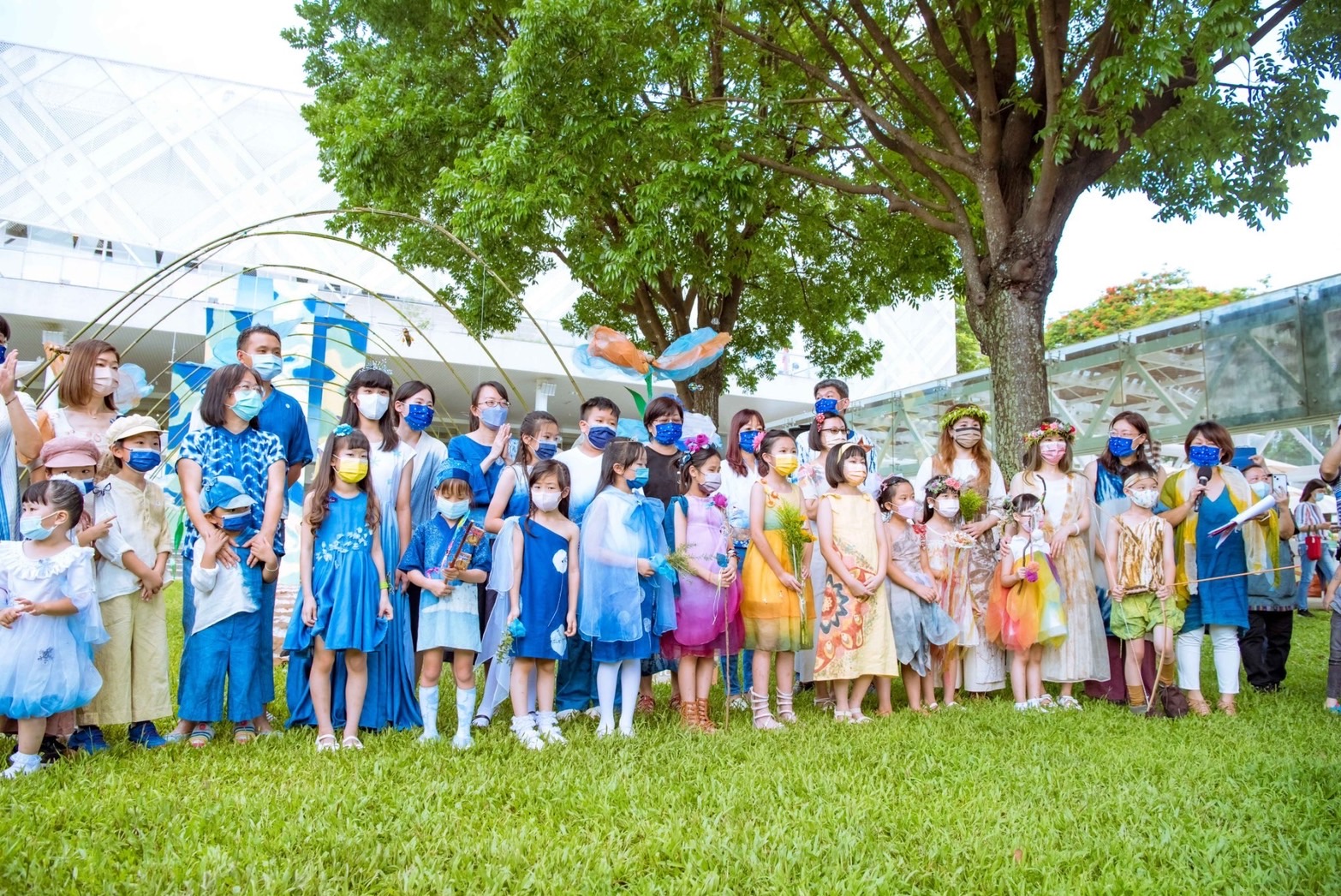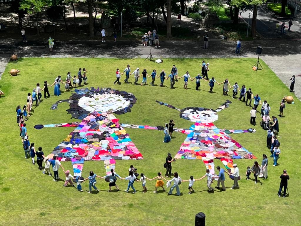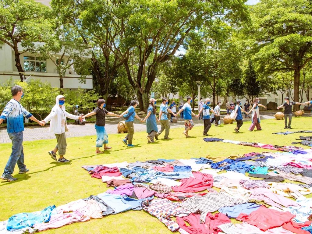 6月26日週末假日,於工藝中心臺灣工藝文化園區陽光草坪舉辦之「蝴蝶的孩子」大地童顏服裝秀,設計師採用舊衣資源再利用,從循環再生的角度切入天然染色纖維服裝設計,凝煉出季節與環境改變的時序流動感,展現工藝所蘊含或者透過工藝所賦予之生命力與活力。走秀活動後,於園區內知達工藝會館草坪區進行「大手牽小手送祝福-舊衣物拼圖行動藝術」,藉由創作快閃藝術地景活動,拉近社區與園區彼此間的距離,同時響應資源再利用,將活動之舊衣物贈與社福團體,傳遞並延續手作的愛與祝福。