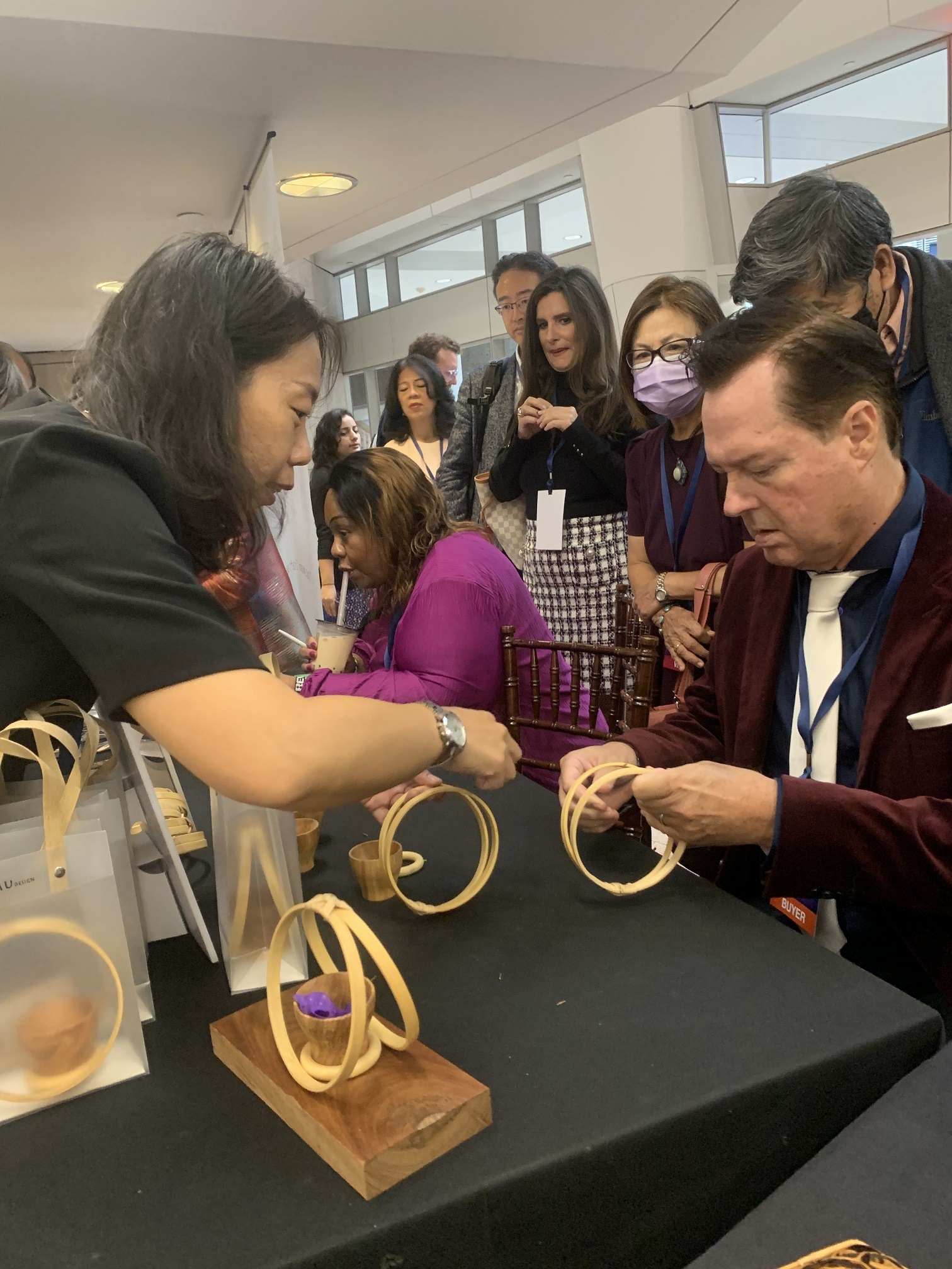 除了靜態展覽外,國立臺灣工藝研究發展中心亦於展覽開幕當日安排了工藝手作體驗活動;包含周靜怡老師名為「圓滿」的木藝袖珍花器體驗,及陳瓊茹老師設計研製的臺灣造型陶片飾品共創體驗。體驗過程中,由工藝家親身示範、悉心指導,賓客無不感受到臺灣細緻的職人工藝與溫暖人情,精緻的手作活動迅速成為會場中的亮點,吸引無數觀者爭相排隊體驗,人潮紛沓而來,更有在日前雙橡園國慶晚宴向隅的貴賓特地前來體驗,展區一時間門庭若市、蔚為奇觀。