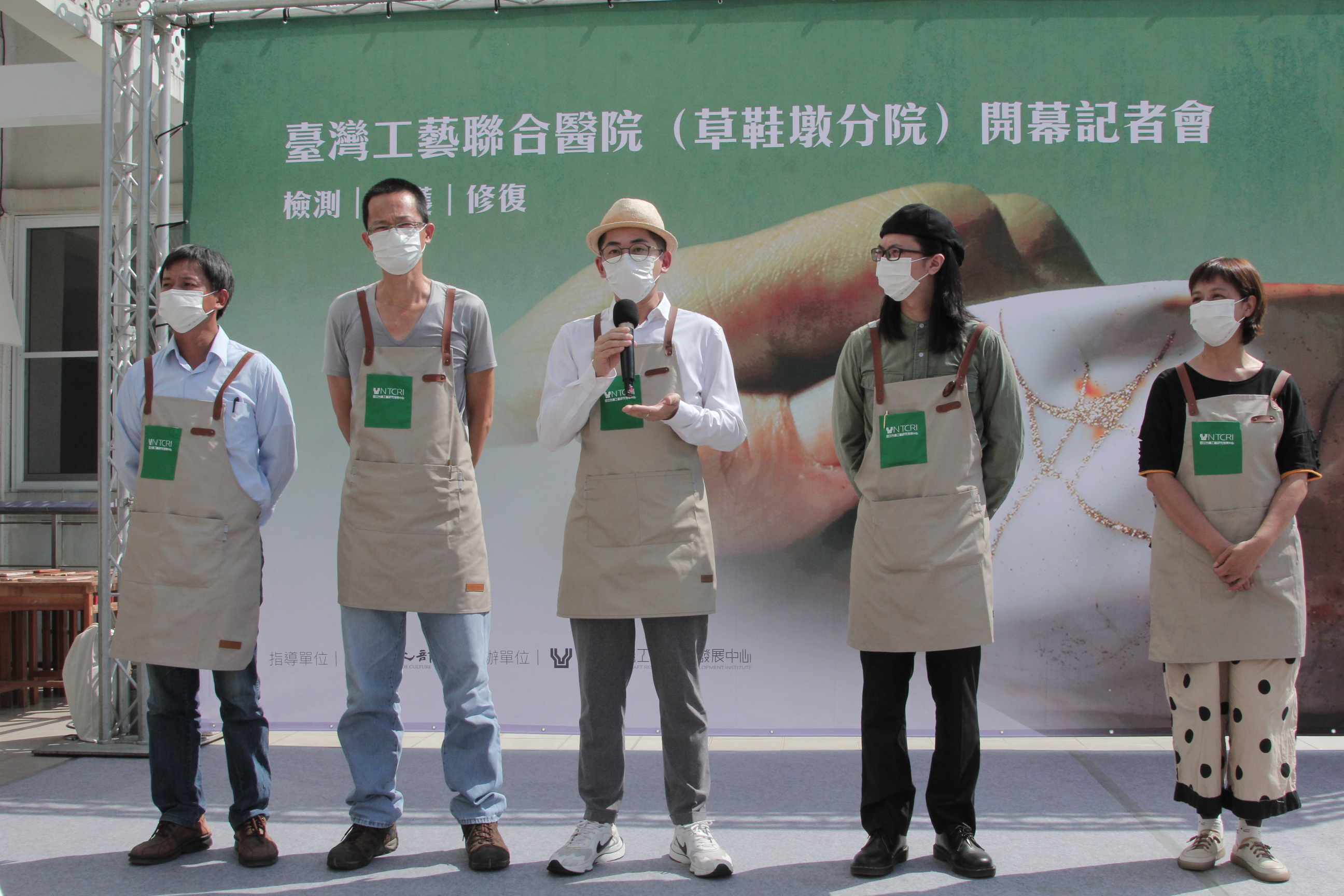 開幕記者會上,工藝中心張仁吉主任與修復提供者代表國立臺灣藝術大學古物文物中心邵慶旺主任、廖偉淇修復師以及需求者代表國史館台灣文獻館張鴻銘館長、南投縣文化資產學會梁志忠理事長及草屯朝清宮莊榮華監事等一同於老陶磚上敲入巨型鋦釘,並在大鋦釘上依序簽名,象徵臺灣修復產業的鏈結;最後,再一同揭開草鞋墩分院門牌匾額,向外宣示草鞋墩分院正式開張。為慶祝分院開幕,特別開放10月21日至10月23日全天(9:00-17:00)免費問診諮詢,歡迎民眾攜帶想保養維護或修復的工藝品來草鞋墩分院,機會難得,親自體驗舊物新生的感動。