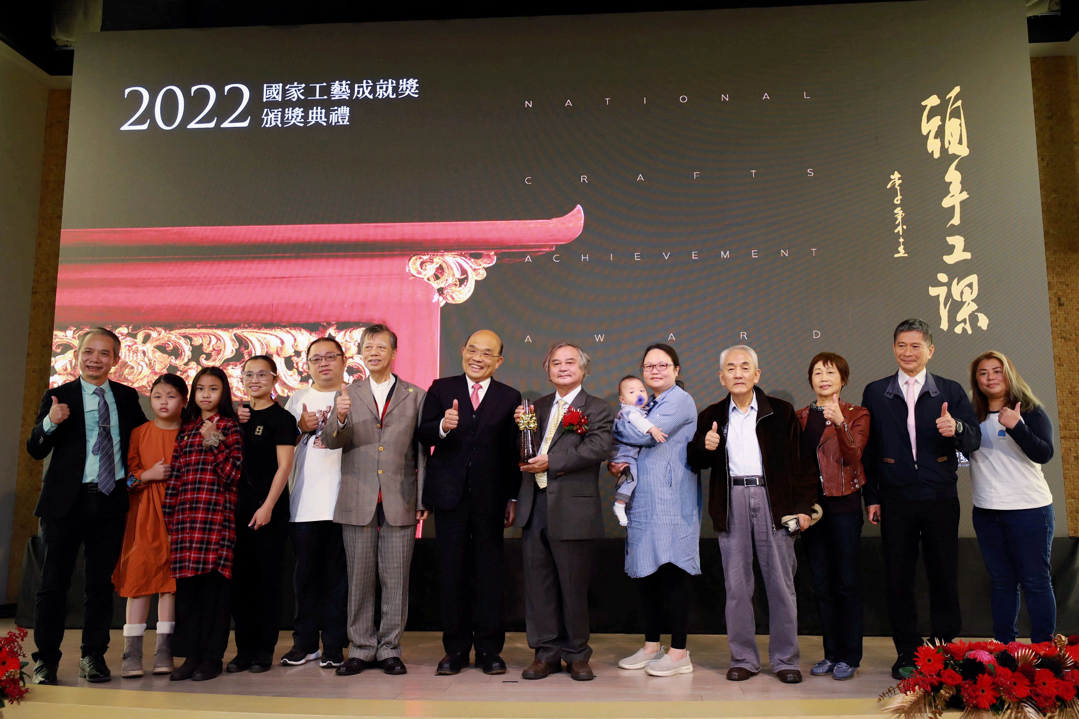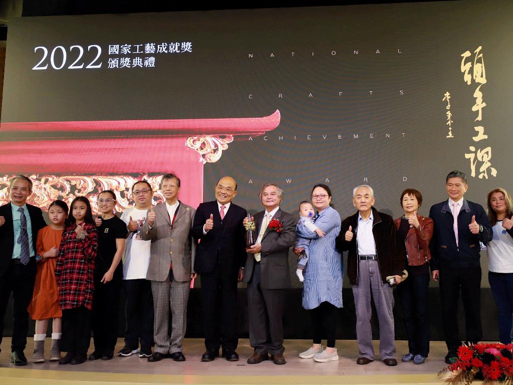 文化部指導,國立臺灣工藝研究發展中心主辦「國家工藝成就獎」是臺灣工藝領域最高榮譽獎項,今(2022)年得主為深耕木雕工藝近60年的李秉圭藝師。今(11)日於國立臺灣工藝研究發展中心盛大舉辦頒獎典禮,行政院長蘇貞昌親臨頒發獎座及得獎證書予得獎人李秉圭藝師,嘉許表揚其於木雕工藝的一心堅持、多元發揮,以及對於臺灣工藝之卓著成就與無私奉獻。