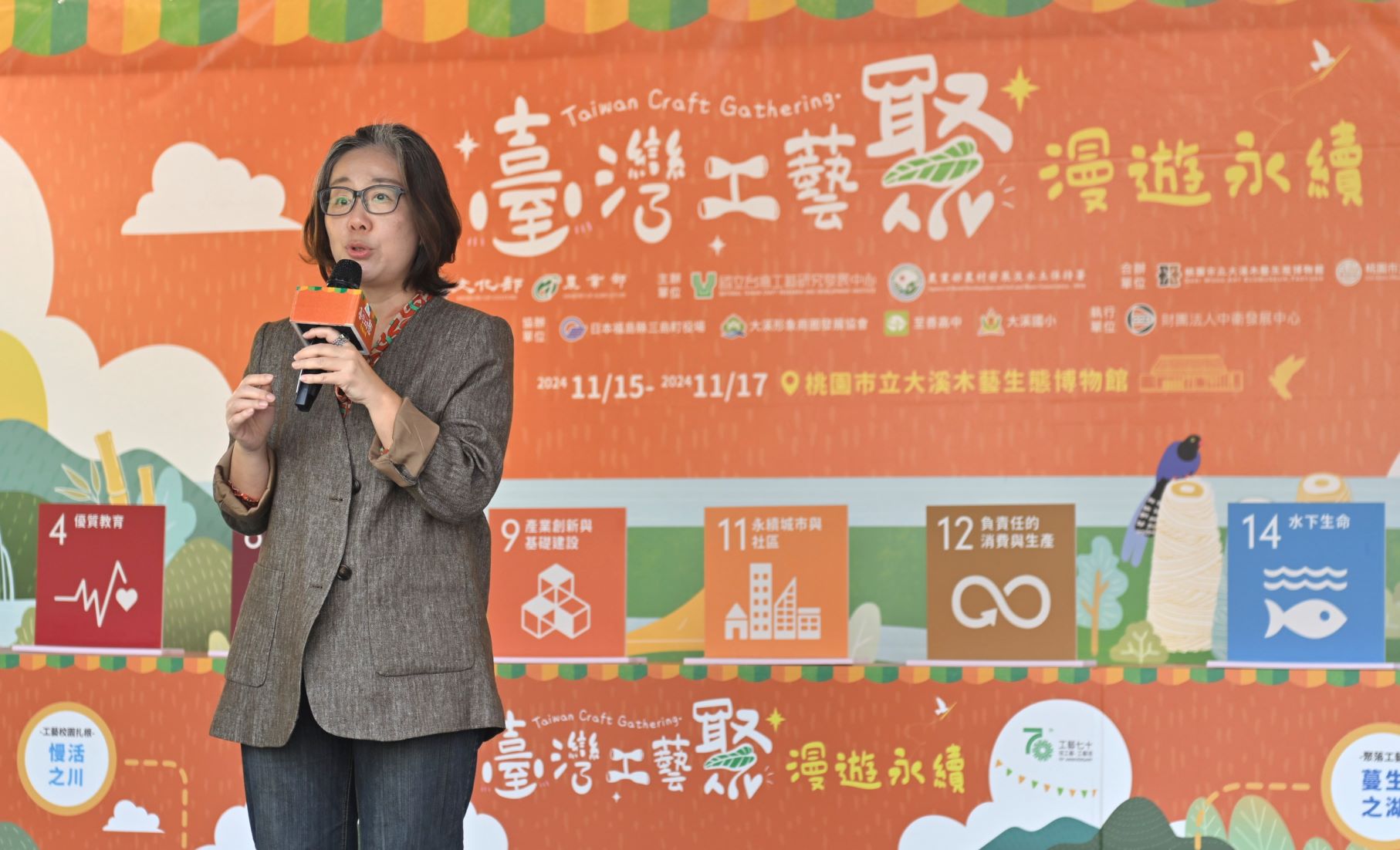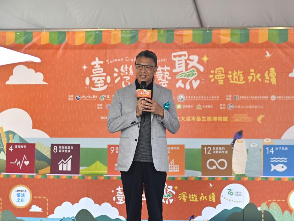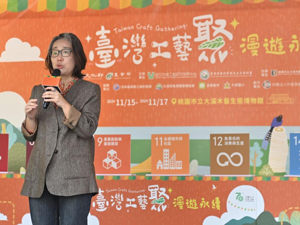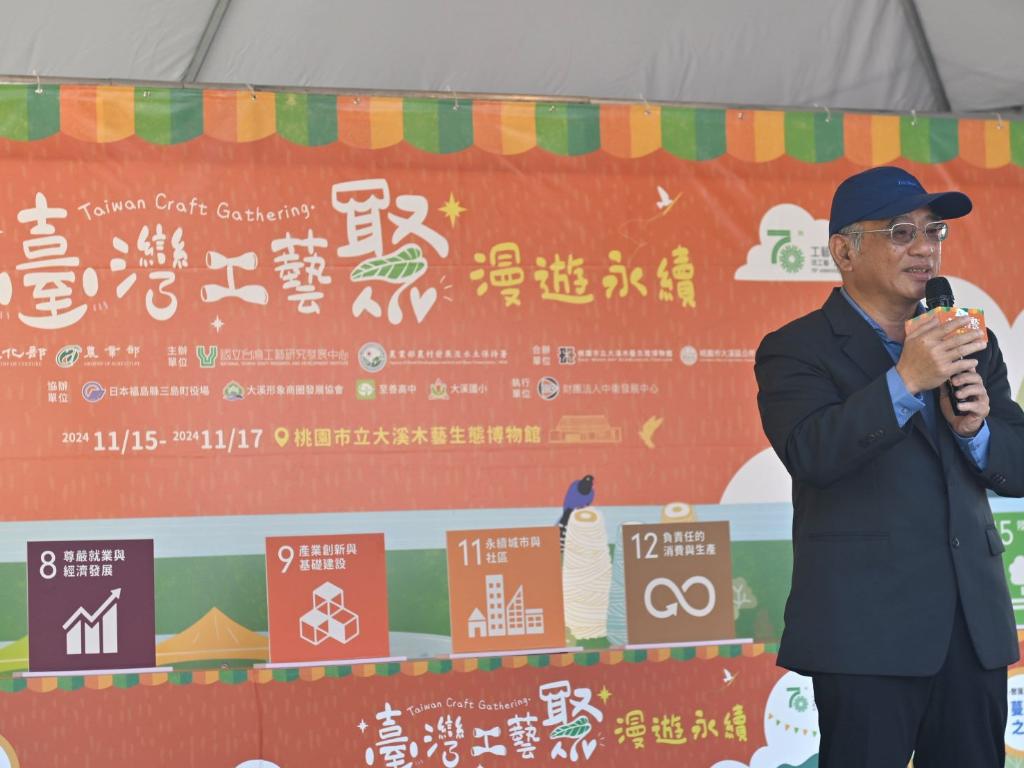 文化部所屬國立臺灣工藝研究發展中心與農業部農村發展及水土保持署共同主辦的「臺灣工藝聚—漫遊永續」相關活動,於今(15)日至17日,在桃園市大溪木藝生態博物館的戶外區域及公會堂盛大舉行。今日開幕記者會,文化部政務次長王時思、國立臺灣工藝研究發展中心主任陳殿禮、農業部農村發展及水土保持署主任秘書陳重光、大溪木藝生態博物館長陳倩慧、桃園市大溪區公所區長徐景揚、國立臺灣工藝聯盟總會長陳啟村等各界貴賓出席。以4大活動為主軸,匯集臺灣社區工藝、聚落工藝、工藝校園扎根,以及來自日本福島縣三島町和會津地區的精湛工藝,展出近60個市集攤位,為跨國際、跨領域及跨族群的臺灣工藝年度盛事。