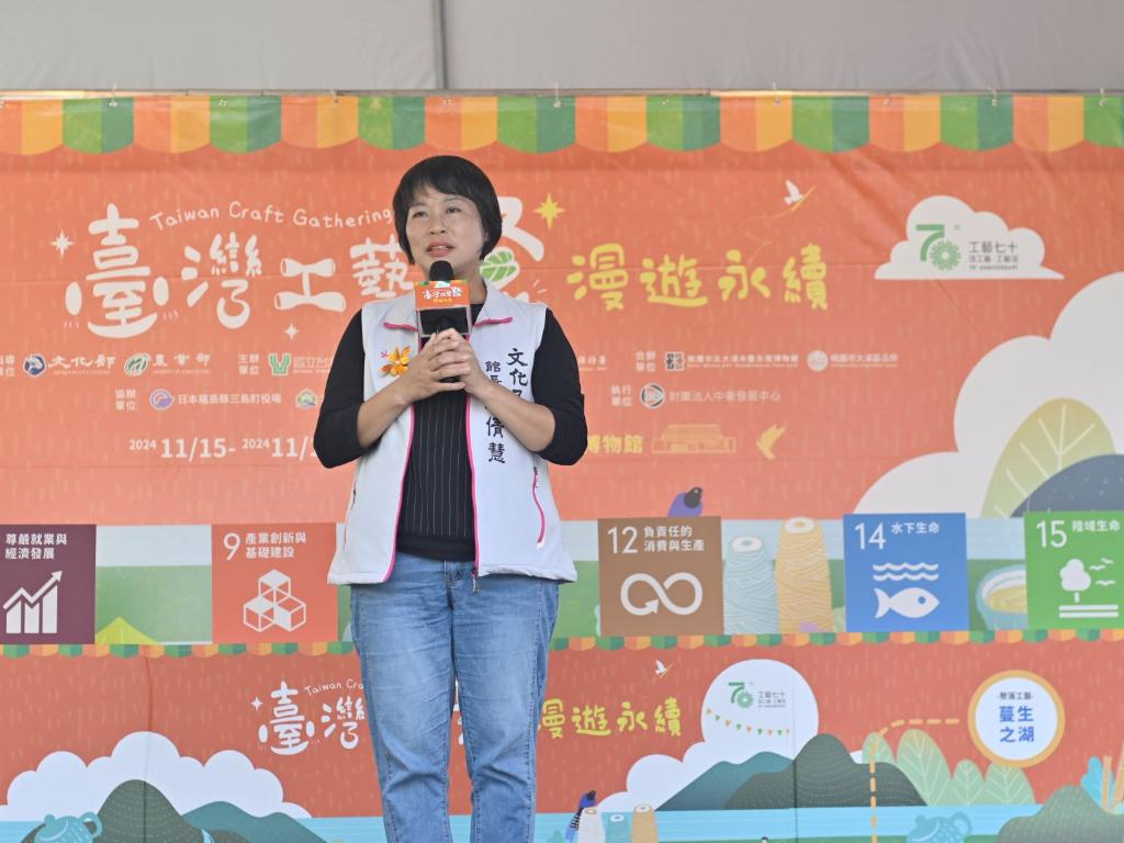 文化部政務次長王時思表示,十分欣喜看到工藝中心在70週年之際走出南投地區來到大溪木藝博物館。感謝農村水保署多年來的支持與陪伴,工藝中心的核心目標在於建構臺灣工藝的生態系,農村水保署則扮演與在地社區結合的重要角色,讓工藝成為地方創生的重要部分。此次活動包含推動校園工藝教育的合作,以及工藝聚落的發展成果展示,並集結工藝師、工藝社區、工藝協會等單位的努力,讓更多人看見並重視臺灣工藝的核心價值。此外,日本福島縣三島町和會津地區所推動的生活工藝普及化與高端藝術化,也提供了學習的典範,期待工藝中心持續完善建構臺灣工藝生態系,讓工藝在臺灣落地生根並源遠流長,未來在國際舞台上持續發光發熱。