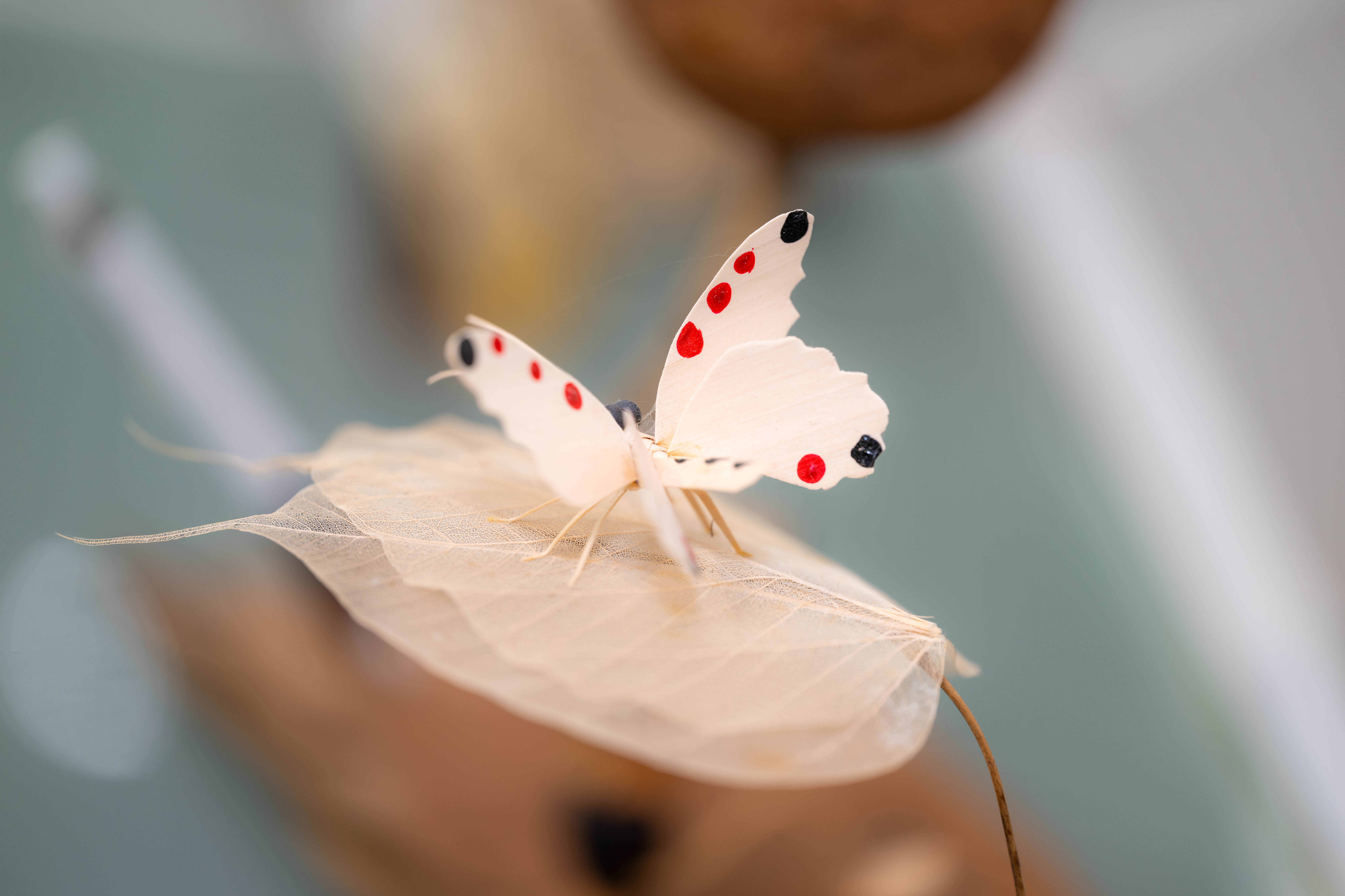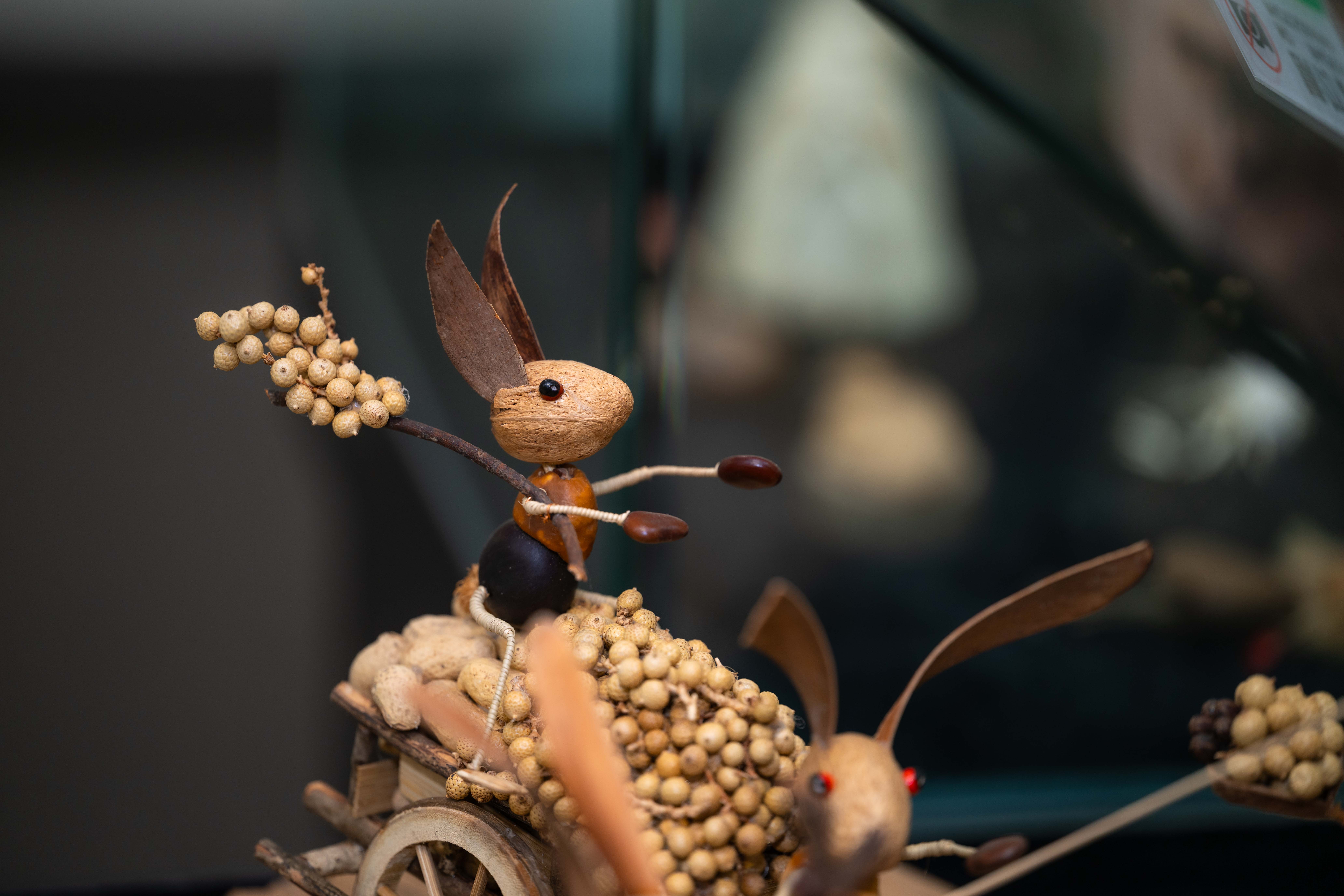 李永謨從一九八九年開始事樹藝自然創作,從各種樹皮、樹葉之中找到最適合且可利用的材質,有的甚至只有果實可運用。雖樹皮、樹葉、果實,它們都不完美,卻都有各自的利用價值,這些樹皮、葉脈、果實透過李老師微妙的收手,創造出各式各樣栩栩如生的昆蟲、動物、花卉,將大自然的素材,化無用為之用,開啟樹的另一面生命價值,且體悟到了生命的真諦。